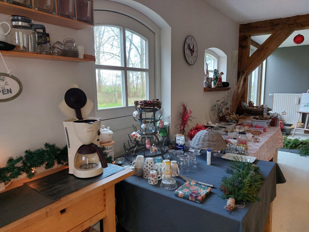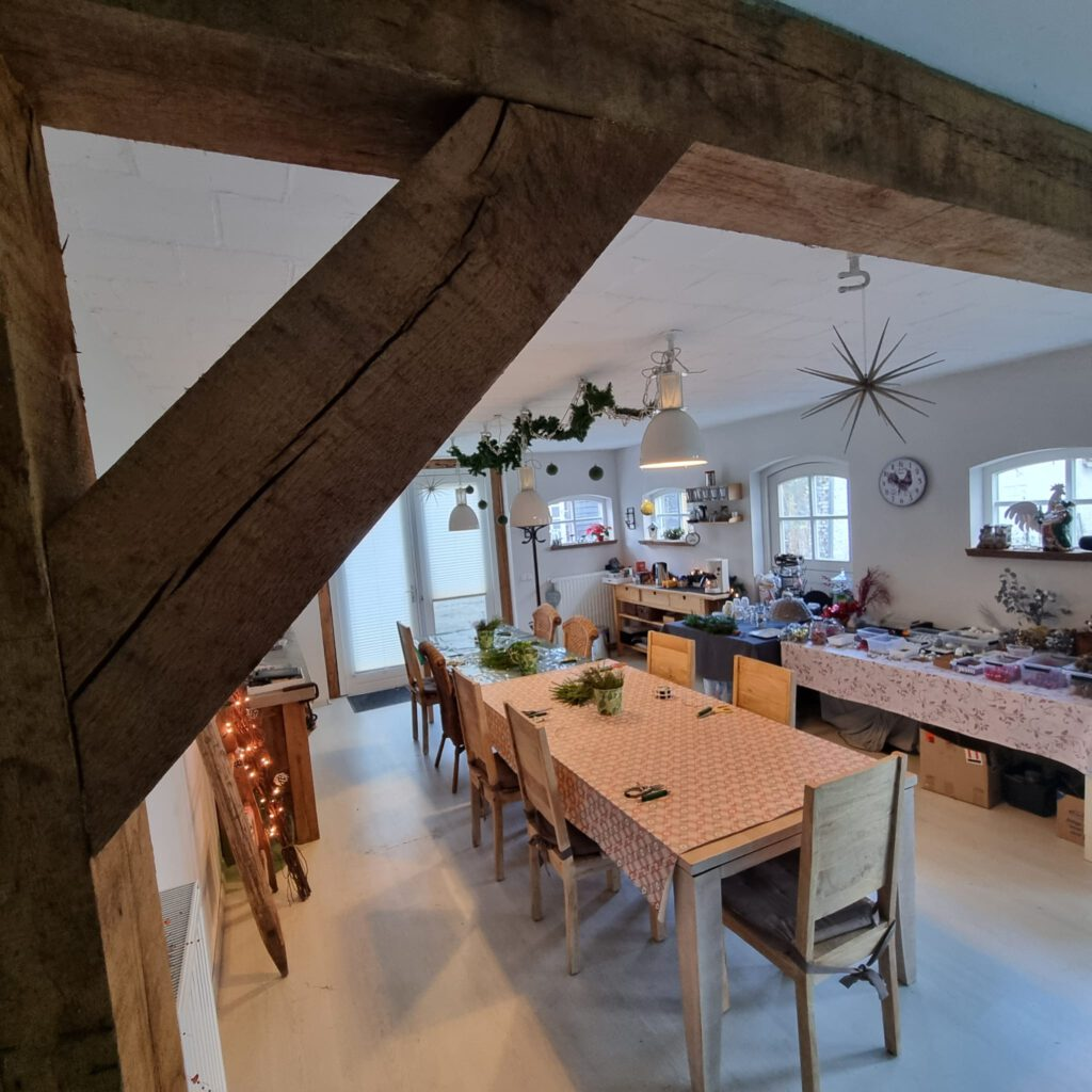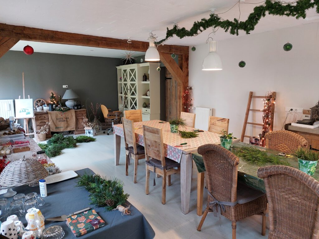 The former cowshed has been carefully restored and now serves as a multifunctional space. The space is suitable for various uses, such as a relaxed friends’ day that starts with tea or coffee or an extensive coffee break. If desired, this can be followed by a creative workshop. If you have specific wishes, we are happy to discuss them and explore together what is possible.